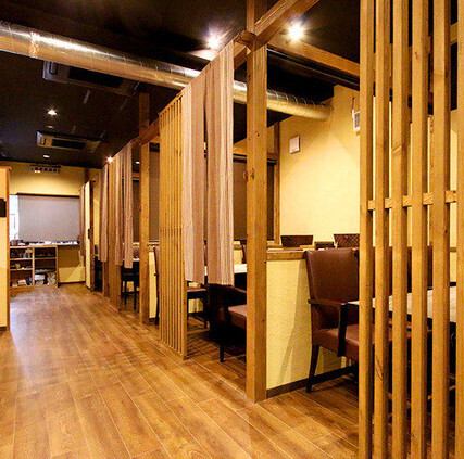 ゆったり座れるカウンター席。ご家族連れに最適なテーブル席、宴会に最適な大広間と様々なシーンでご利用いただけます。ご来店お待ちしております。仕切りを取りますと1・2階合わせて最大62名様までお入り頂けます。